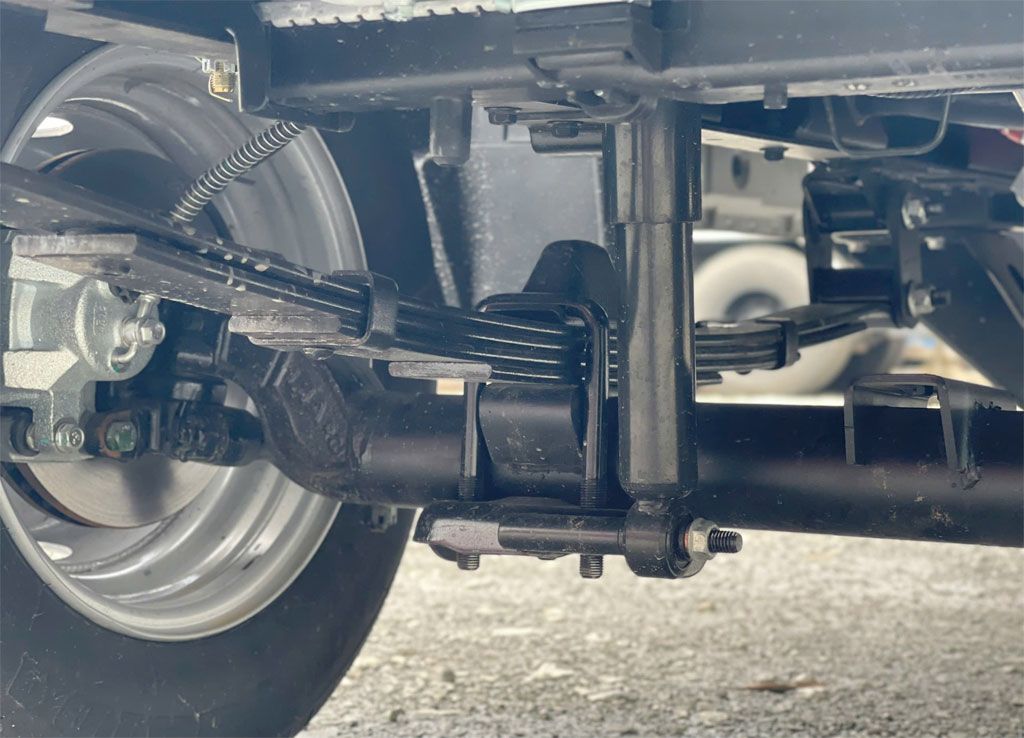 Nhíp lá bán elip + giảm chấn thủy lực trước/sau